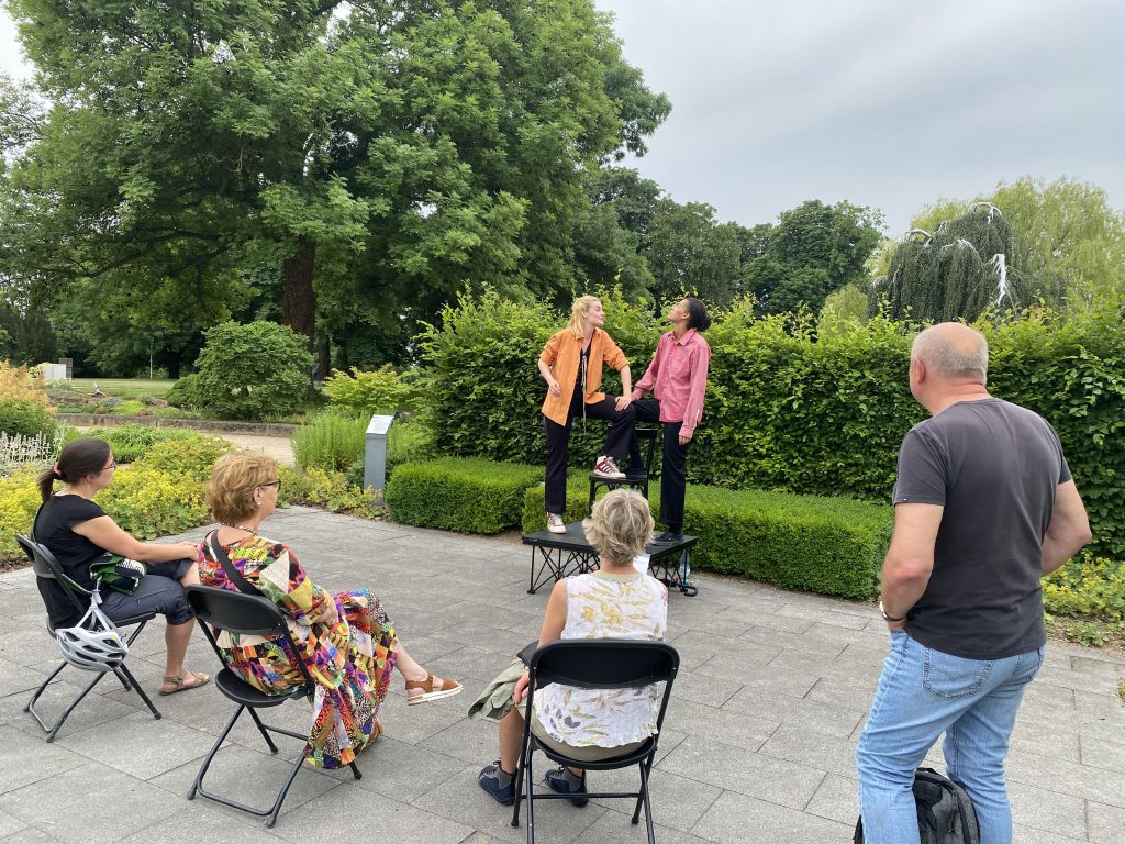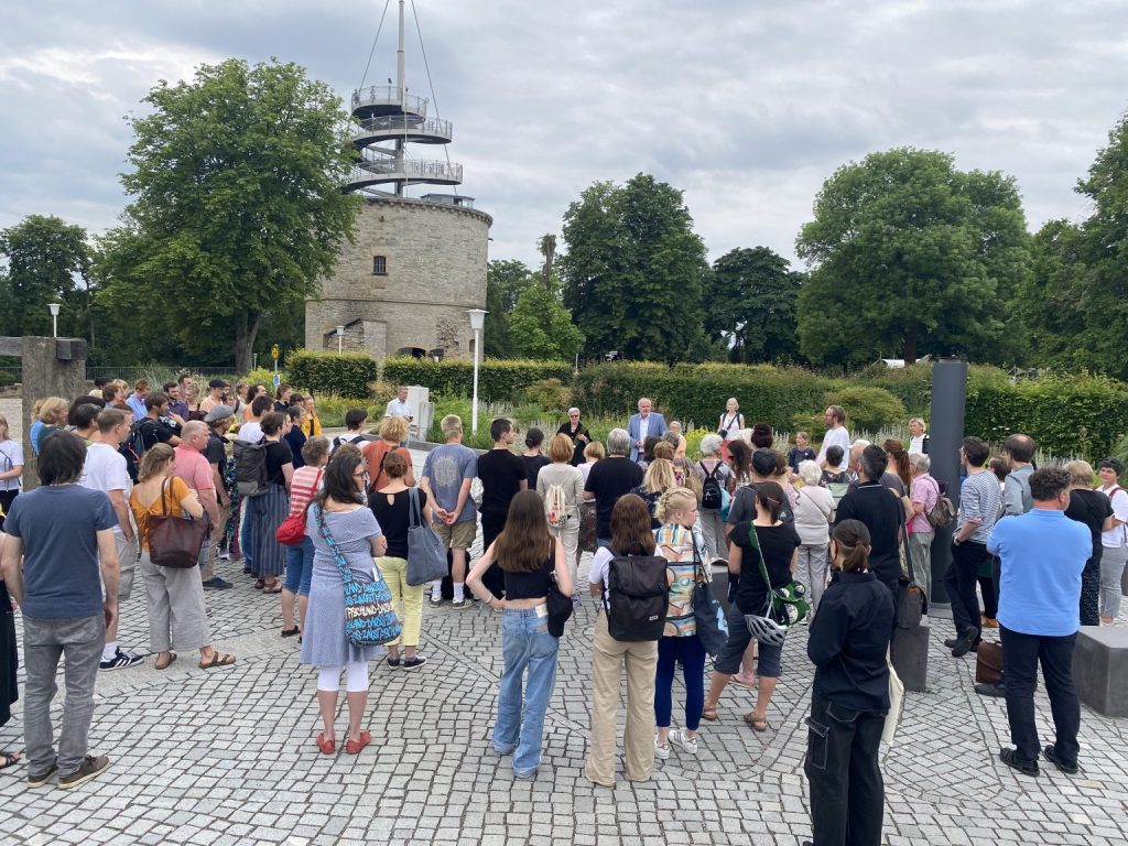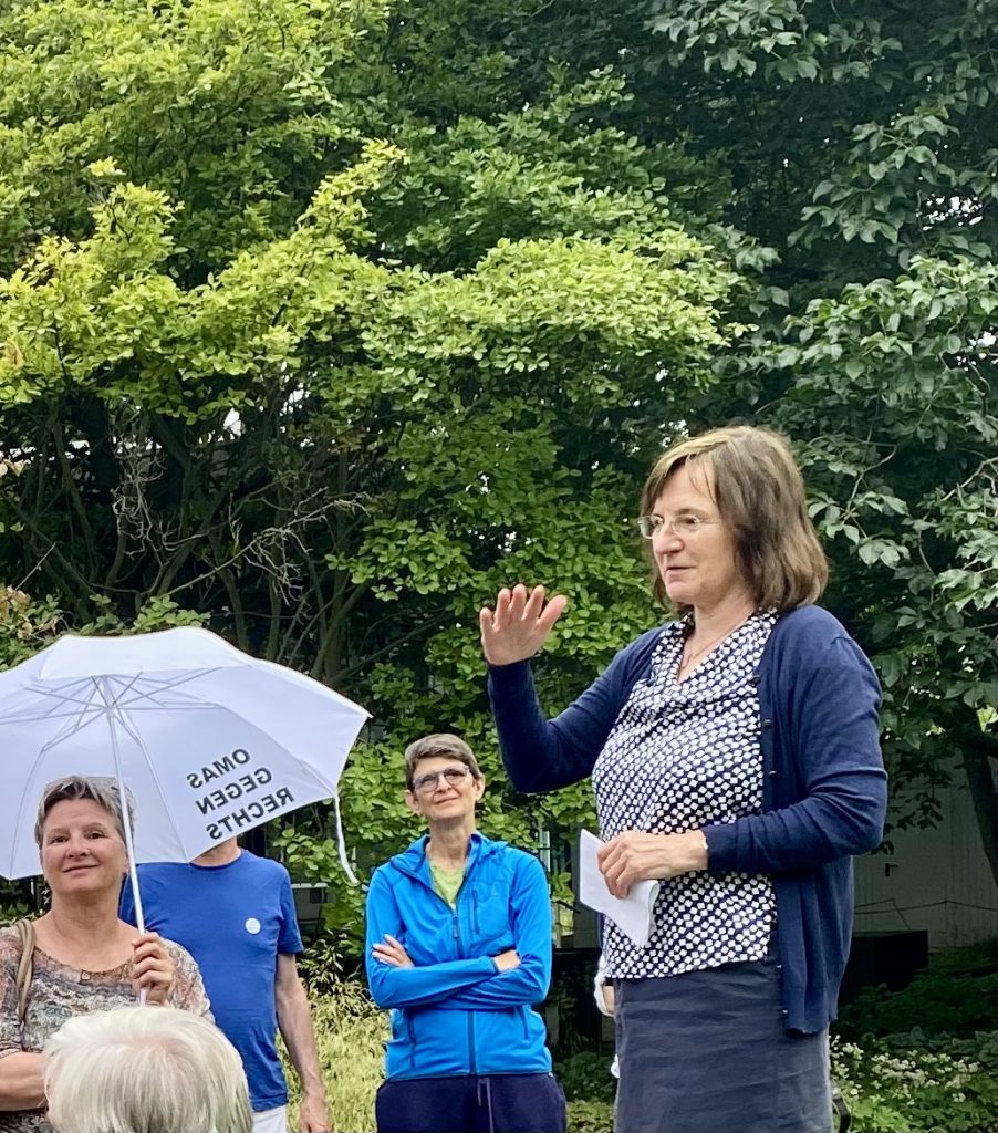 Frau Dr. Schüle erläutert im Anschluss an die Lesung die Pläne für den „Denkort Bücherverbrennung 1933“