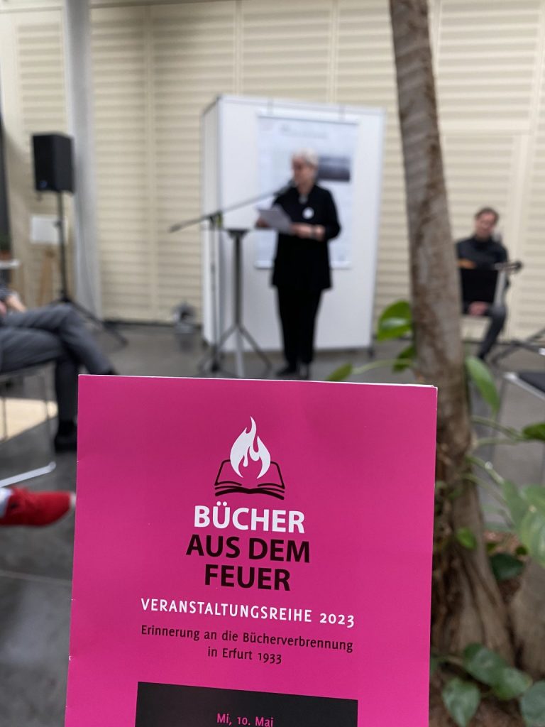 Die mit viel Engagement und Herzblut vorbereitete Veranstaltungsreihe des Jahres 2023 erlebte am 10. Mai 2023 im Deutschen Gartenbaumuseum auf der ega ihre Eröffnung mit der Vernissage zur Ausstellung „Verbrannte Orte“ von Jan Schenck. Der Kurator selbst konnte nicht anwesend sein, aber ließ von dem OMAs ein Grußwort verlesen. Die Redner der Veranstaltung, Frau Richter vom Gartenbaumuseum, Herr Dr. Knoblich, OMA Gabriele und Frau Dr. Schüle betonten die Bedeutung der generationenübergreifenden Erinnerungsarbeit, die vom Verein OgR initiiert wurde und nun von vielen Kräften der Zivilgesellschaft fortgeführt wird.